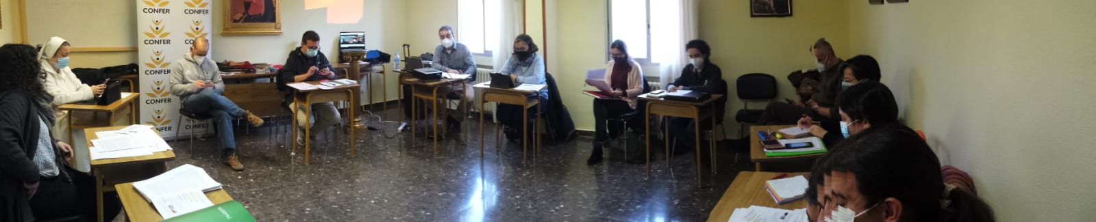 En el encuentro de hoy la reflexión ha girado en torno a la misión del área de PJV de CONFER y su papel como referente en la reflexión sobre lo que es la pastoral juvenil y vocacional. Tras 50 años de camino continua el proceso de crecimiento y reflexión sobre esta materia aplicada a la luz de los tiempos. La riqueza del discernimiento y el diálogo de las distintas sensibilidades del grupo nos lleva a ver la pastoral juvenil y vocacional como algo integral en la vida de los jóvenes; no como compartimentos estancos. La vocación es la respuesta a la llamada de la misión de Dios para cada uno de nosotros, y en el proceso de discernimiento el joven se reconoce y se compromete con dicha misión en su vida.