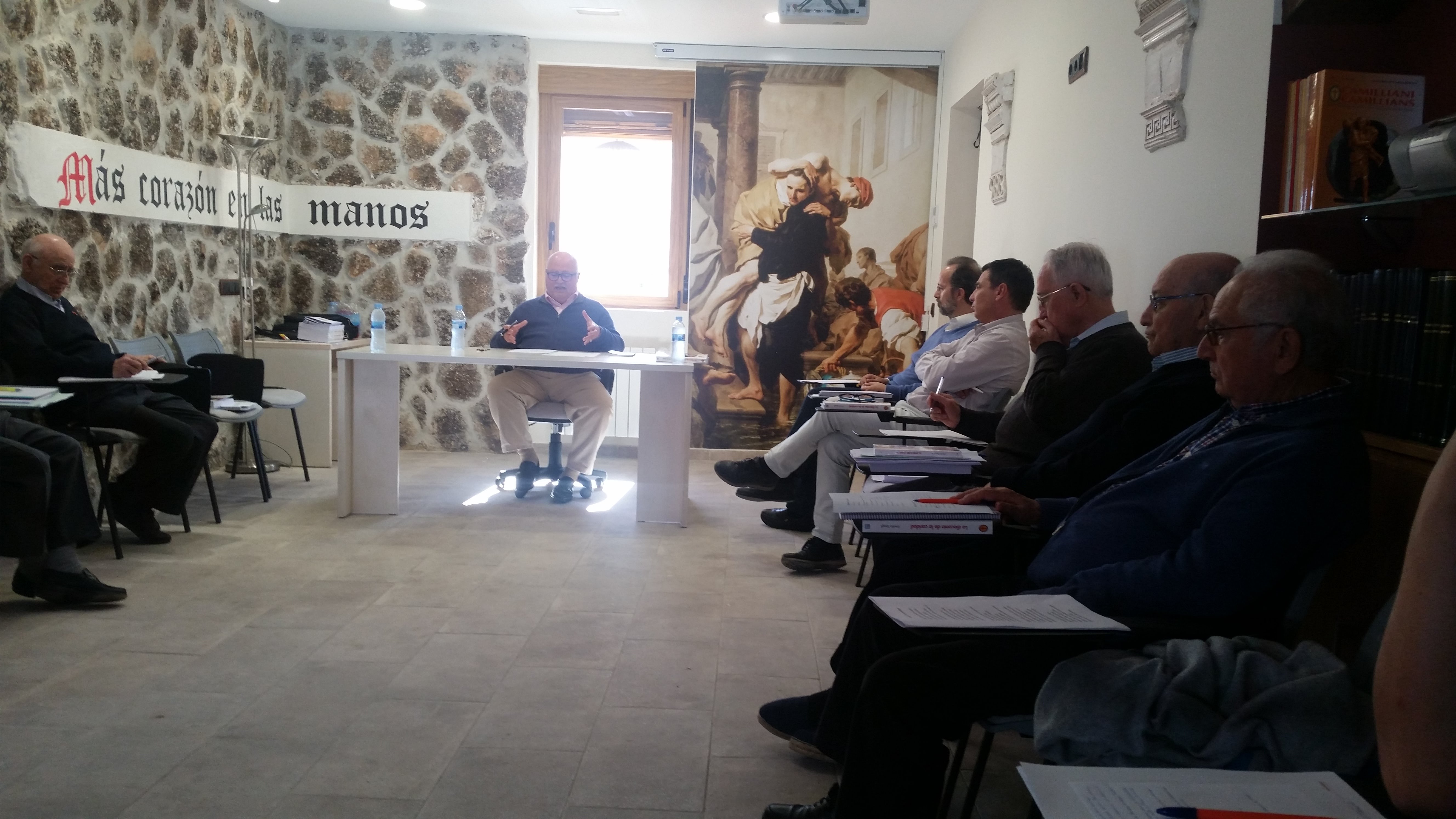 La mañana del miércoles hemos continuado con la reflexión del libro “La Diaconía de la caridad”. En esta última reflexión el P. Jesús Ruiz tomó como referencia el pasaje del evangelio de San Juan en el capítulo 12, “la unción de Jesús en Betania” compaginándolo con la imagen de San Camilo y su celo por el servicio a los enfermos los enfermos. La vivencia del cuarto voto nos remite al llamado de Camilos a sus seguidores de ser capaces de "Ver a Cristo en los enfermos y ser, al miso tiempo, Cristo para los enfermos"