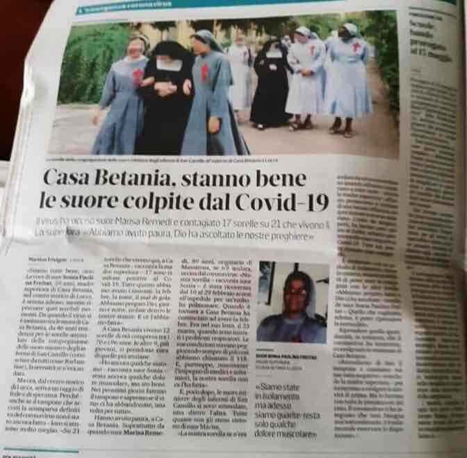 Home · Ministras de los Enfermos frente al Coronavirus · Recorte de diario de la noticia del contagio de 17 religiosas