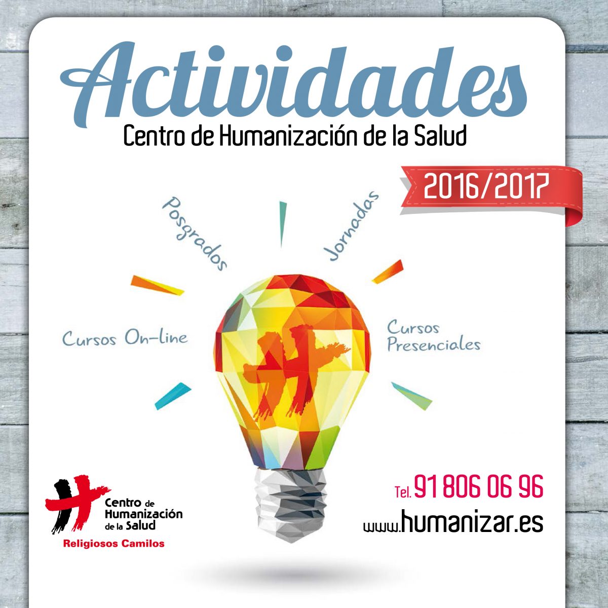 El Centro de Humanización de la Salud, de los Religiosos camilos presenta una renovada oferta de formación para el curso 2016-2017. Esta propuesta de formación se dirige prioritariamente a profesionales que trabajan en los servicios sociales, sanitarios o sociosanitarios (auxiliares de enfermería, técnicos de atención sociosanitaria, trabajadores sociales, psicólogos, médicos,…) y que quieren adquirir conocimientos y destrezas para que su actividad tenga una impronta humanizadora.